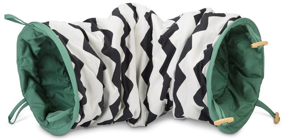 Deze tunnel kan in de lengte neer worden gelegd, maar de uiteindes kunnen ook aan elkaar worden geknoopt. Op die manier krijg je een bocht, waardoor het spelletje spannender wordt voor jouw kat. De binnenkant is afgewerkt met zacht pluche, zodat de tunnel lekker zacht aanvoelt voor jouw kat. Is jouw kat klaar met spelen, dan klap je de tunnel in en berg je het eenvoudig op.