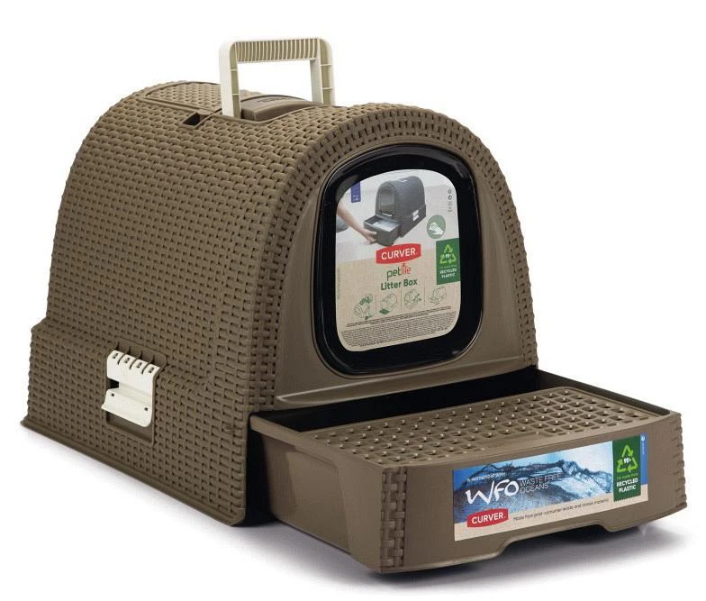 Een prachtig afgewerkte rotan kunststof kattenbak van Curver. Niet alleen een lust voor het oog maar ook zeer gemakkelijk in gebruik.