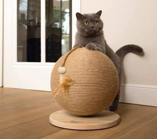 Met de leuk vormgegeven Designed by Lotte houten krabbol Balty kan de kat eindeloos spelen. De bol is voorzien van touw en heeft een koord met een bolletje en een veer.