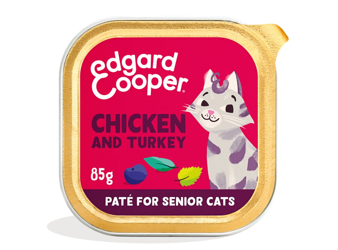 Edgard & Cooper kattenvoer Senior Kip en Kalkoen Paté is een volwaardige vrije-uitloopkip-en-kalkoenpaté en bevat geen junkfood en is ideaal voor senior katten. Hij is zijdezacht en lekker mals.