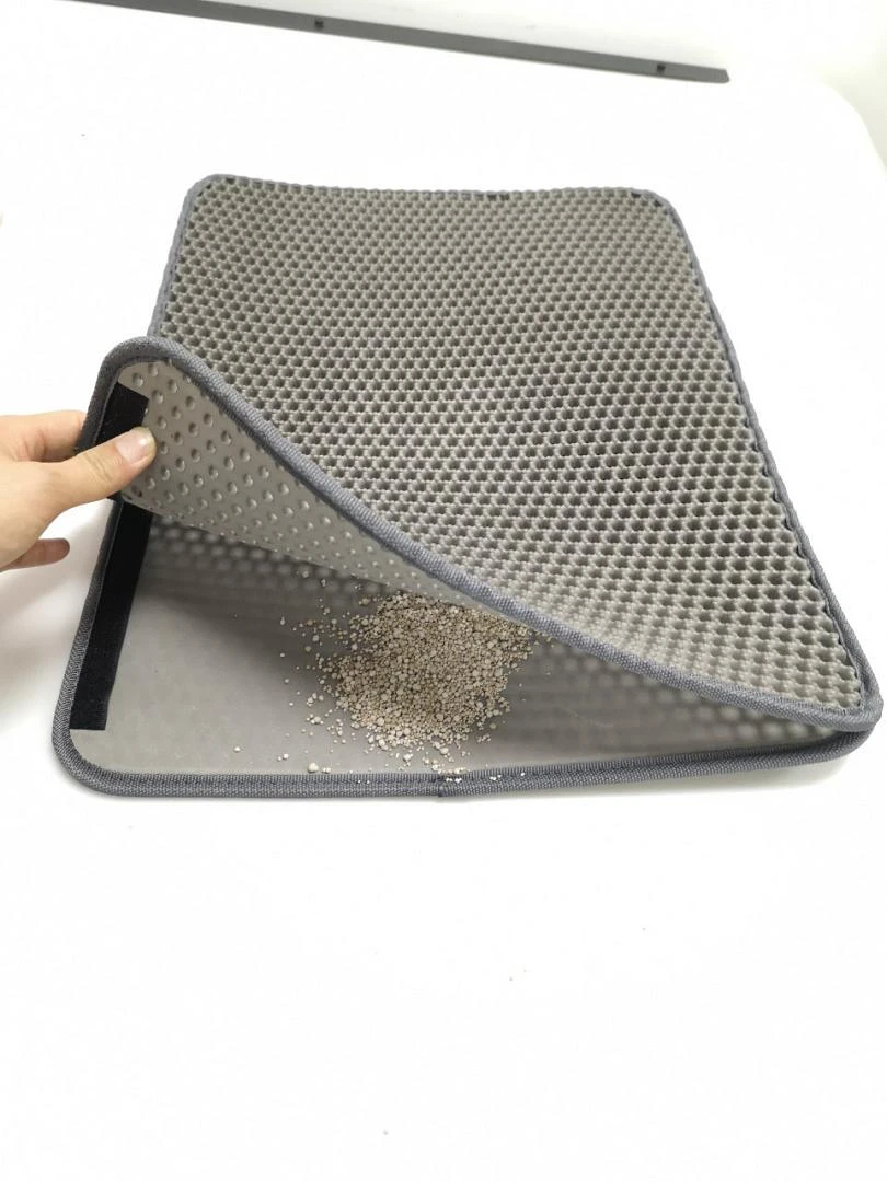 De honingraatstructuur van deze mat zorgt ervoor dat het gruis, modder of zand van de poten op de mat achterblijft. Het gruis zakt door de gaten van de eerste laag heen en verzamelt zich tussen de twee lagen.