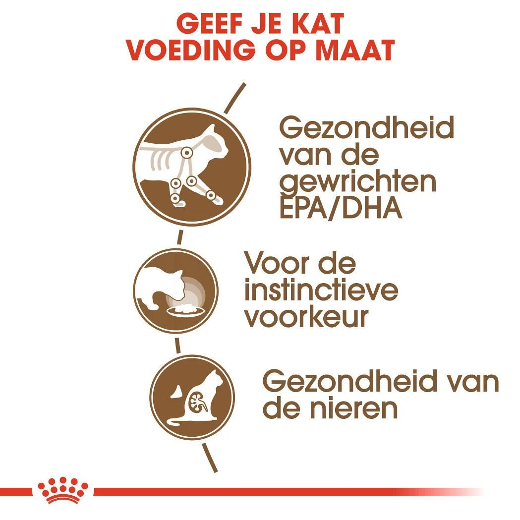 Ageing 12+ in gravy van Royal Canin ondersteunt de gezondheid van je ouder wordende kat. Het heeft een laag fosforgehalte, wat goed is voor haar nieren. En een hoog mineralengehalte, dat de urinewegen ondersteunt. En wat de kat zelf het belangrijkste zal vinden: het is erg lekker. De smakelijke samenstelling van vleesbrokjes in saus bevordert de eetlust.