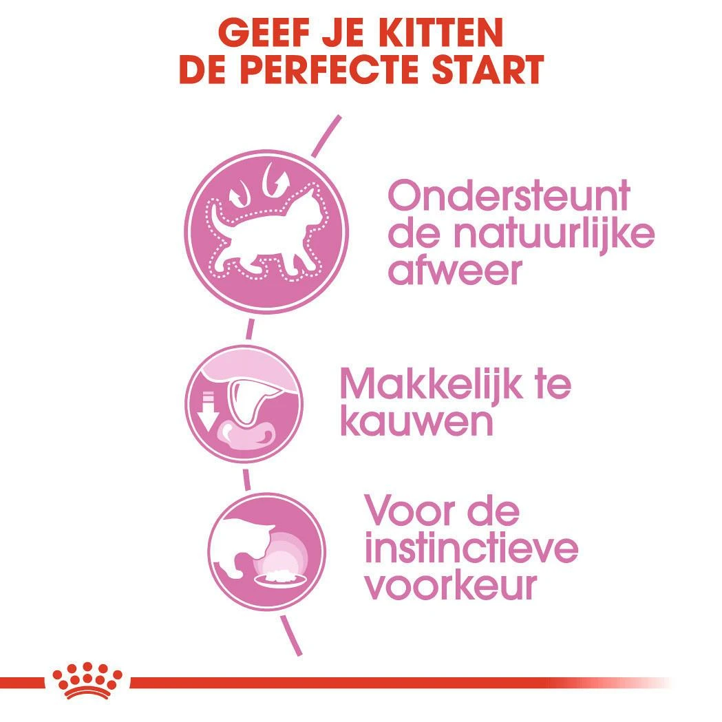 Kitten bevat ingrediënten waar 30% van de kittens van 4 tot 12 maanden instinctief de voorkeur aan geven. De grootte en de structuur van de brokjes zijn aangepast aan de kleine kaak van de kitten. De voedingsstoffen helpen de natuurlijke weerstand van je kitten te ondersteunen. En dat het lekker is, dat zie je meteen aan ze! Daarnaast is Kitten Instinctive ook uitstekend geschikt voor drachtige poezen.